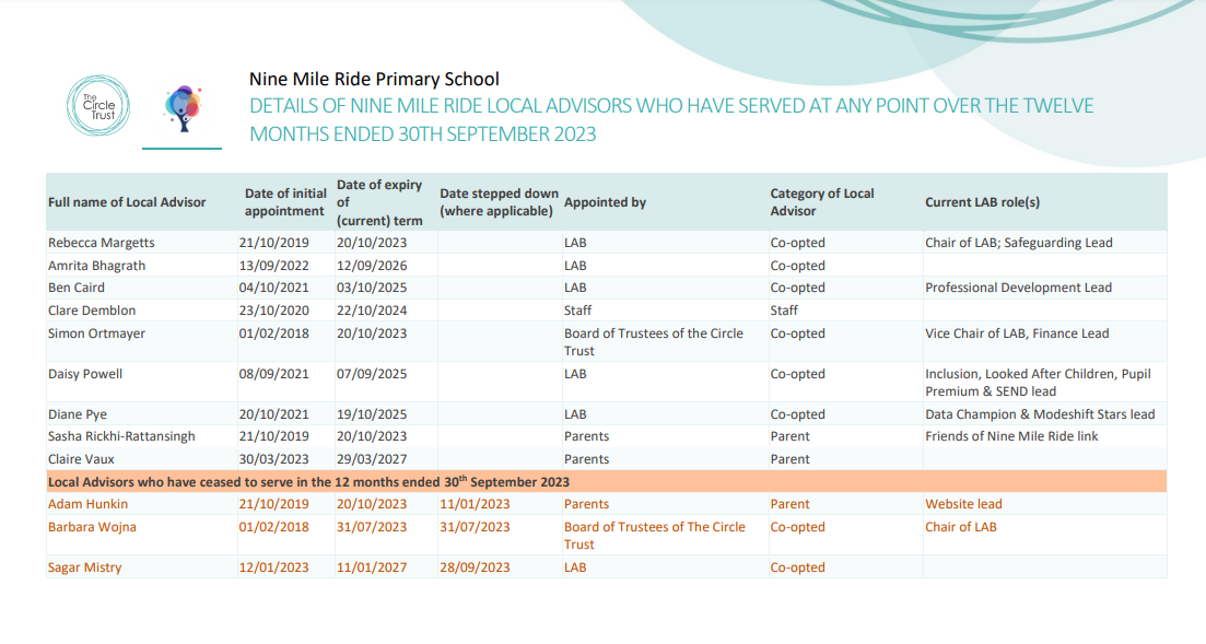 There are now two reserved positions on the Board for parent Trustees and the Resolution Circle for pupil suspensions and exclusions, complaints and certain personnel processes.